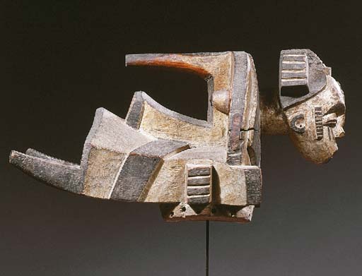 Variations of the mask will sometimes have a carved human head on the other end, which is called ntekpe. These types of Enyi Ogbodo are usually only reserved for senior age grades, which is an indication of the group with the highest spiritual authority.