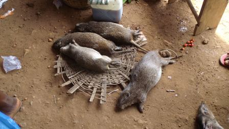 “Grasscutters. They are a kind of rodent. They are like rats, but they are larger, and they live in the wild. So its a very popular meat in Africa, especially in the Igboland. We call it Nchi. And it is believed that when you have a guest, and you give him grasscutter, you’ve really honored your guest. But its not Kosher, so I stopped eating it. We still eat our African food but we make it Kosher” – Samuel